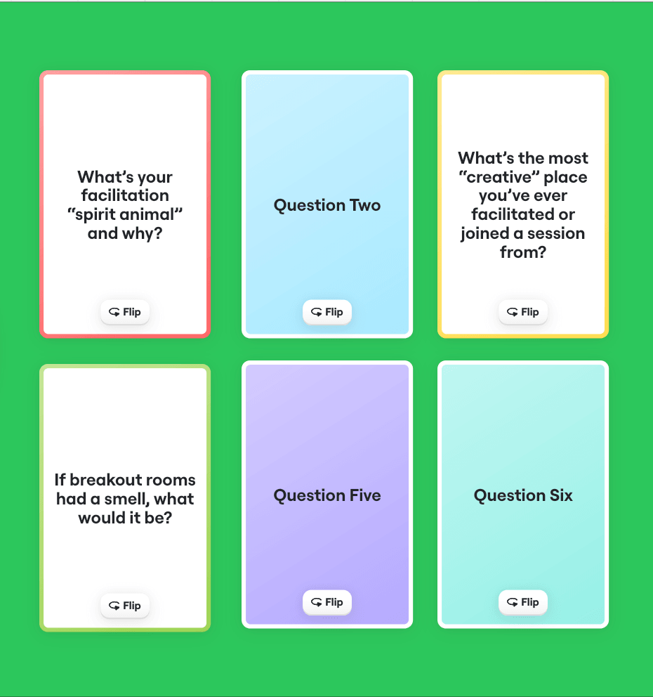 Image: Some flip cards I generated in Miro as an opening activity.