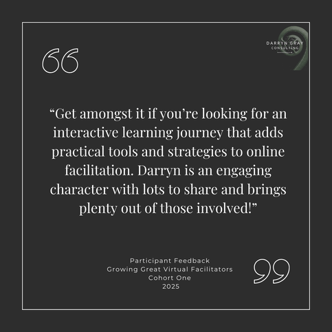 Growing Great Virtual Facilitators is an 8‑week group coaching programme that will help you start designing and delivering engaging live virtual sessions — with real practice, customised learning, and a supportive group.