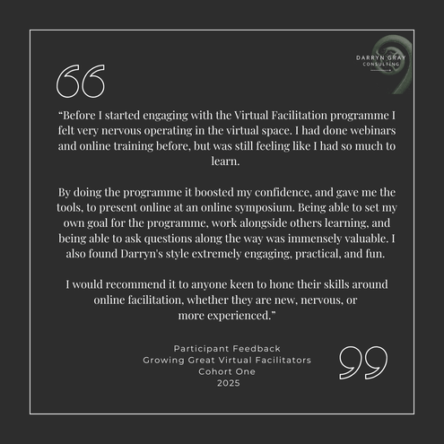 Registrations are open for the next cohort of my Growing Great Virtual Facilitators Group Coaching Programme. Check it out now!
